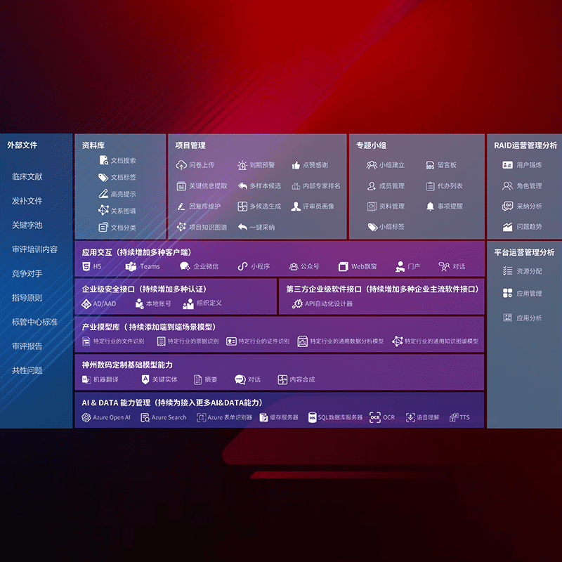 医疗器械产品上市前,,,要熟悉严格与繁复评审标准,,,整理分析监管机构指导文件中的海量信息。。。。企业急需一个智能化解决方案,,,,提升知识管理效率,,,提高评审通过率,,,以提升其市场竞争力。。。。